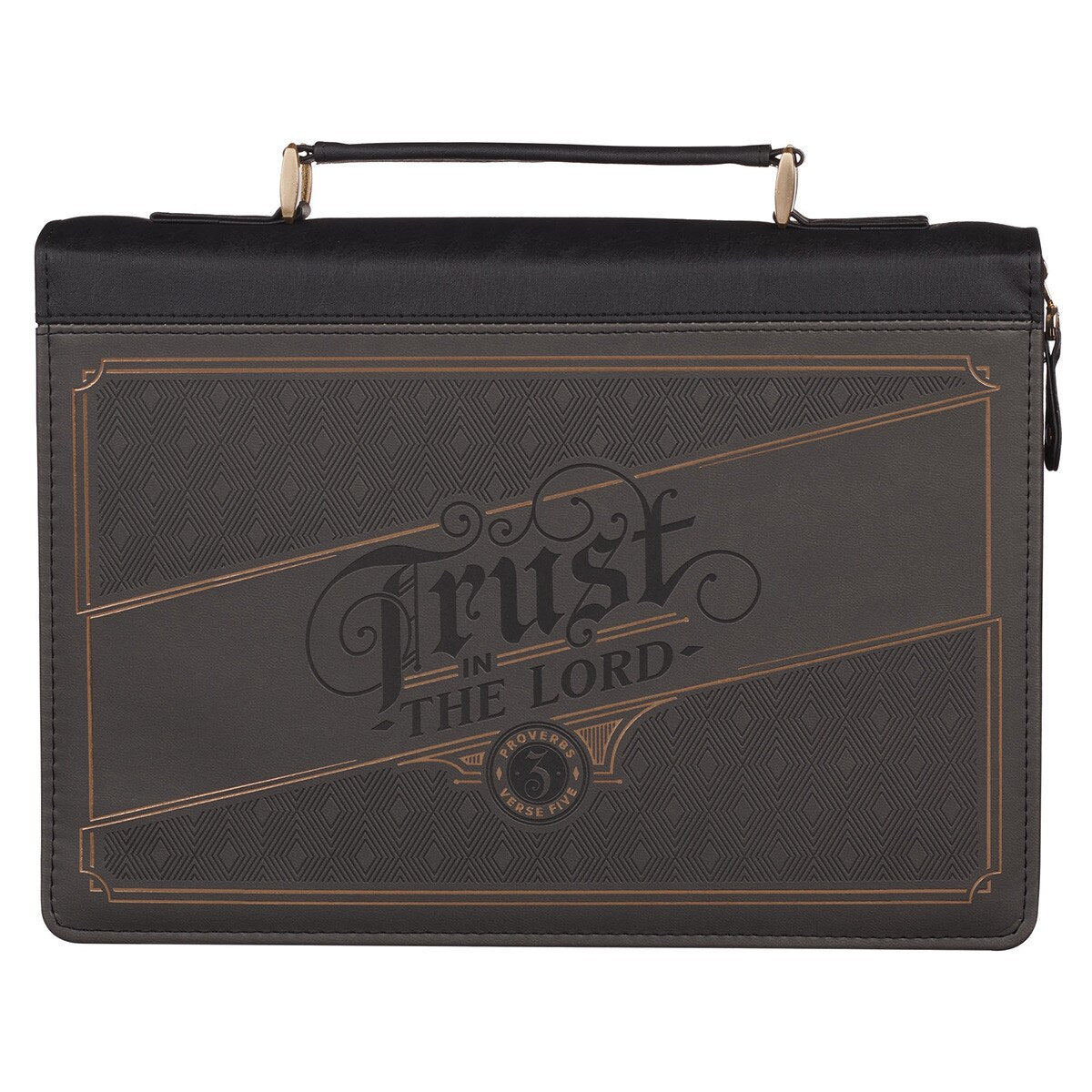 Bible Cover Classic Gray/Black Trust in the Lord Prov. 3:5 Large