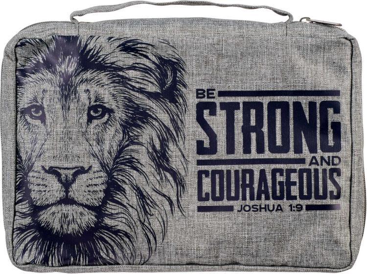 Strong & Courageous Joshua 1:9 Poly-Canvas Bible Bag, Gray, Large