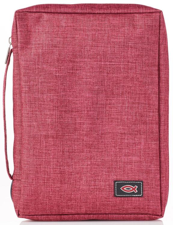 Burgundy Poly-canvas Bible Cover with Ichthus Fish Badge Medium
