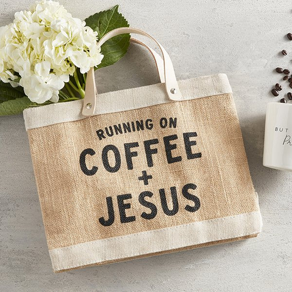 - Burlap textured jute, with contrast stripe, and double purse handles of genuine leather