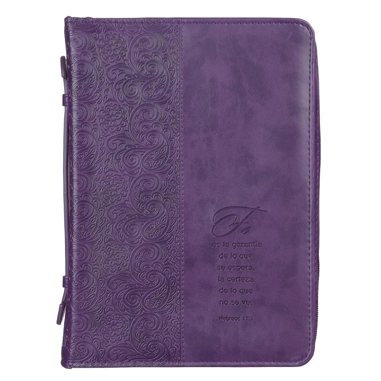 Funda para Biblias Fe, Morado – Hebreos 11:1, Grande