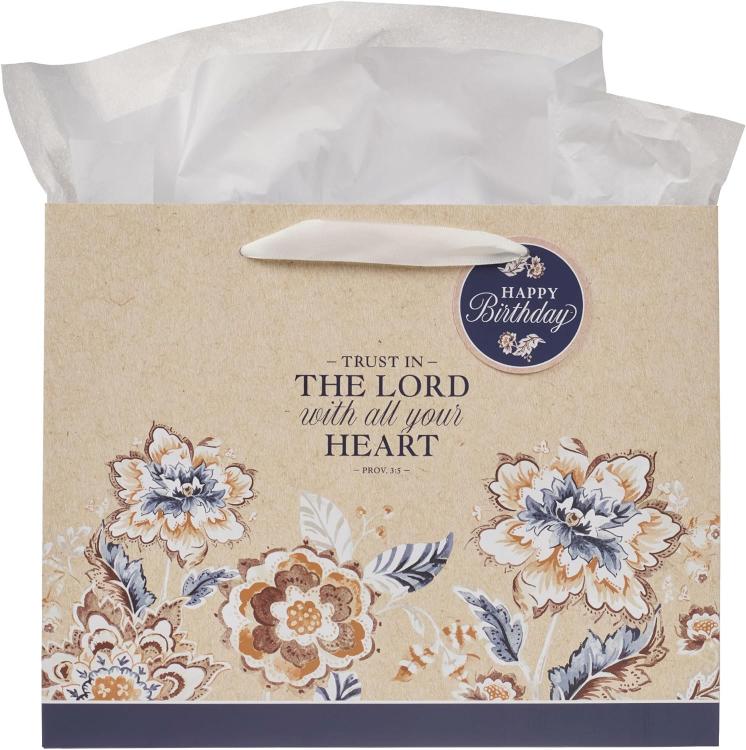 Wrap your gift in the Trust in the Lord Honey-brown and Navy Large Landscape Gift Bag, to add a spiritual dimension to the celebration.