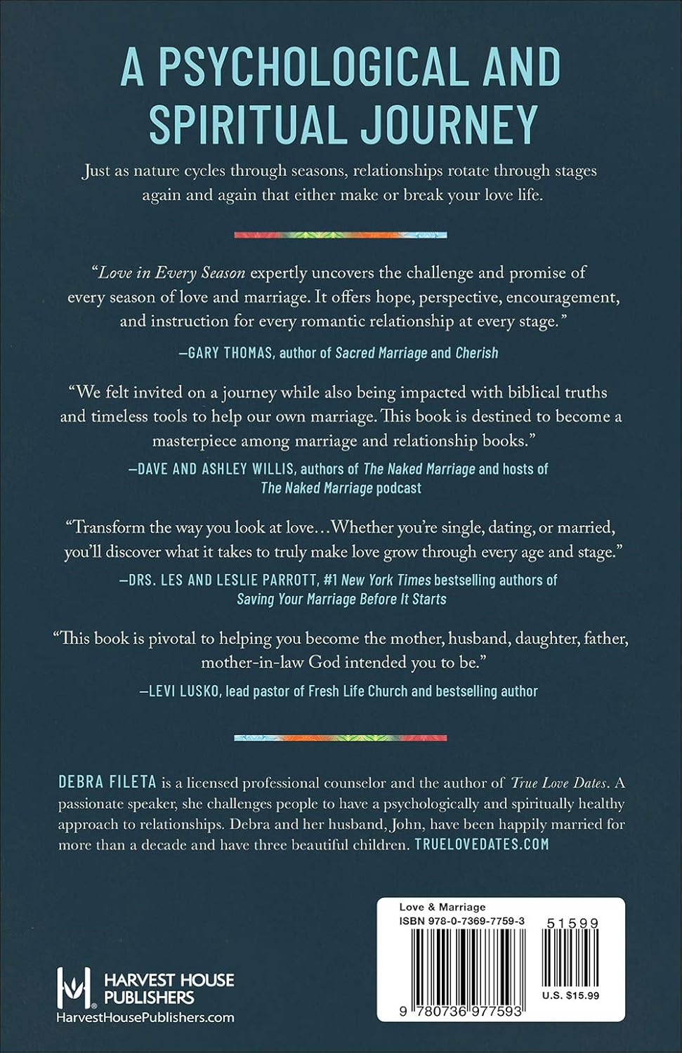 Every relationship goes through four life-changing seasons: Spring. Summer. Fall. Winter. Each season plays an important role in taking your relationship to the next level. And depending on how you navigate each season, your relationship will either flourish and grow, or it will slowly die. Whether you're single, dating, engaged or married, join licensed professional counselor and relationship expert, Debra Fileta as she takes you on an eye-opening psychological and spiritual journey through the four seasons that she has observed in every healthy relationship: Spring: The season of rapid growth where friendship blossoms and attraction blooms. Summer: The season when things get hot physically, emotionally and spiritually, but if you're not careful, you can end up getting burned in the heat of summer. Fall: The seasons where your true colors begin to vulnerably shine through, as you learn the art of building trust through healthy conflict and communication. Winter: The season when things begin to cool down, and your relationship is either strengthened with the passing of time and the comfort of familiarity, or it begins to freeze over. Recognizing the patterns of each season and understanding how to navigate each one with intention is vital to the health of your relationship. No matter what your relationship status, get ready to learn everything you need to know about how to strengthen your love in every season.