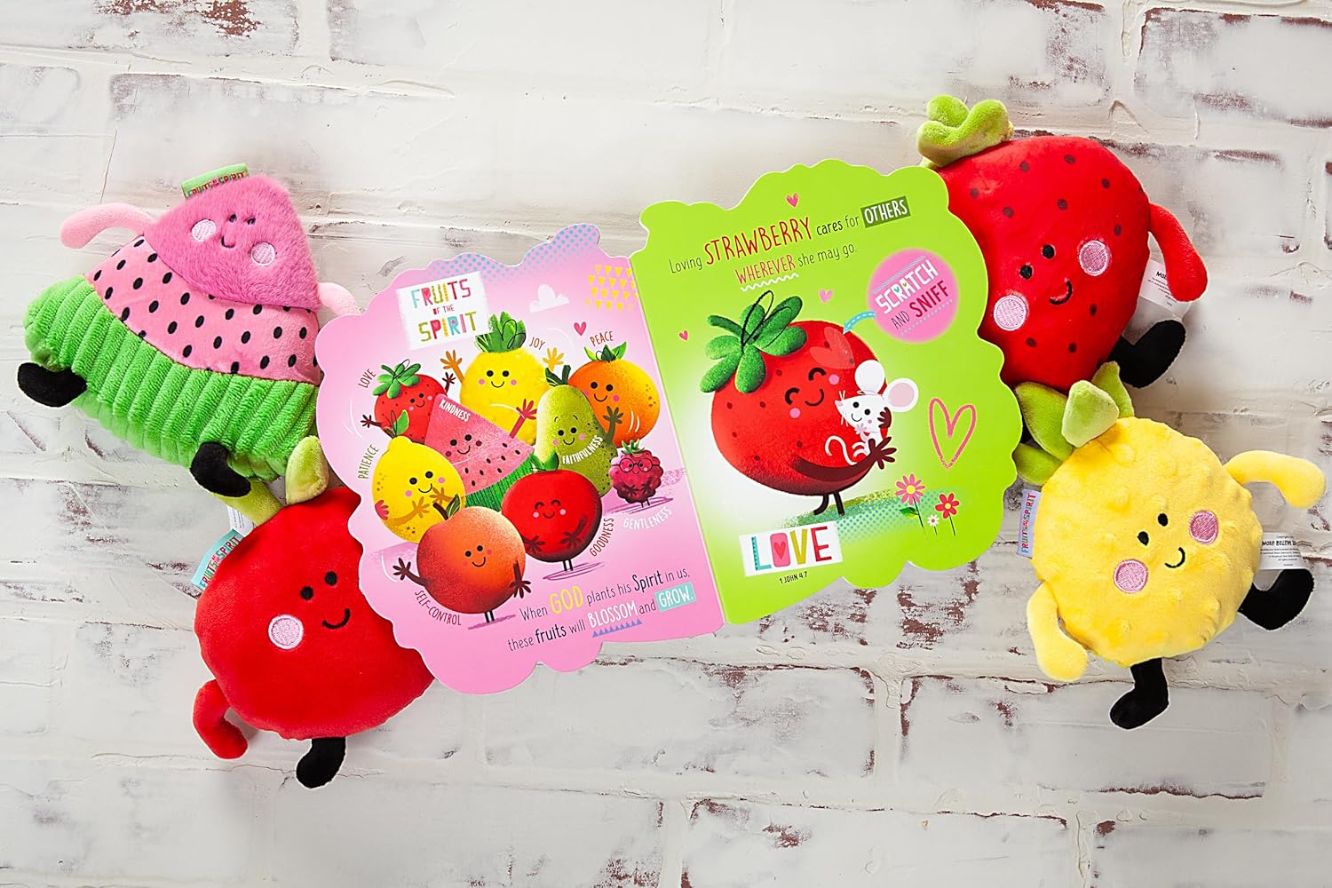 This multi-sensory book has an embroidered-patch cover, so curious hands can touch and explore the super-cute fruit characters that have come together to represent God’s Fruits of the Spirit.