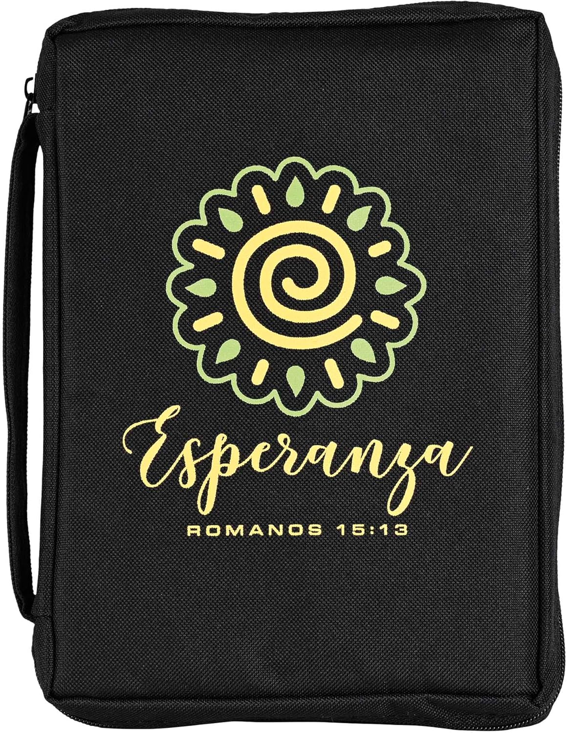 - Bringing style with a fun design, this black carry case is sure make a fashion statement that reflects your faith with grace and flair; Presents sentiment "Esperanza" - Romanos 15:13; Designed to enhance your reading experience, interior includes a pen holder loop and attached bookmark
