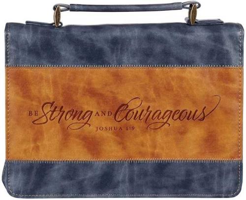Strong and Courageous Butterscotch and Navy Classic Bible Cover - Joshua 1:9