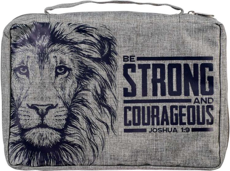 Strong and Courageous Lion Gray Value Bible Cover - Joshua 1:9, Medium