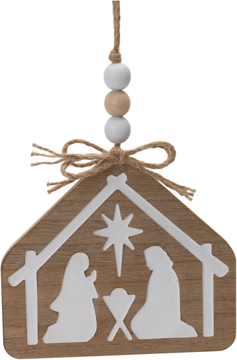 Wood Christmas Nativity Scene Hanging Ornament, 7.5-inch Height